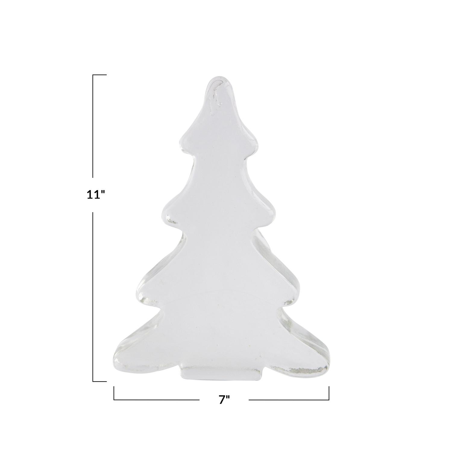 This tall glass tree decor is a lovely and unique way to decorate for the holidays. It features a flat glass tree decor in clear with a smooth texture, creating a beautiful and eye-catching effect. The tree decor has a colorful and festive look that can suit any style and theme, from traditional to modern. The tree decor is ideal for displaying on a wall, door, window, or fireplace, where it can add a touch of charm and warmth to the space. The tree decor can also be easily hung or leaned against any surface, making it a convenient and versatile option. The tree decor is made of glass that is durable, smooth, and easy to clean, making it a long-lasting and high-quality option. It measures 7 inches in length, 1 inch in width, and 11 inches in height, making it a graceful and noticeable centerpiece. Elevate the holiday decor with this eye-catching Christmas tree, adding both style and a touch of whimsy. A tall and unique flat glass tree decor in clear with a smooth texture. A colorful and festive addition to any holiday decor, this tree decor reflects light and creates a beautiful effect in any room. Ideal for displaying on a wall, door, window, or fireplace, this tree decor can be easily hung or leaned against any surface.