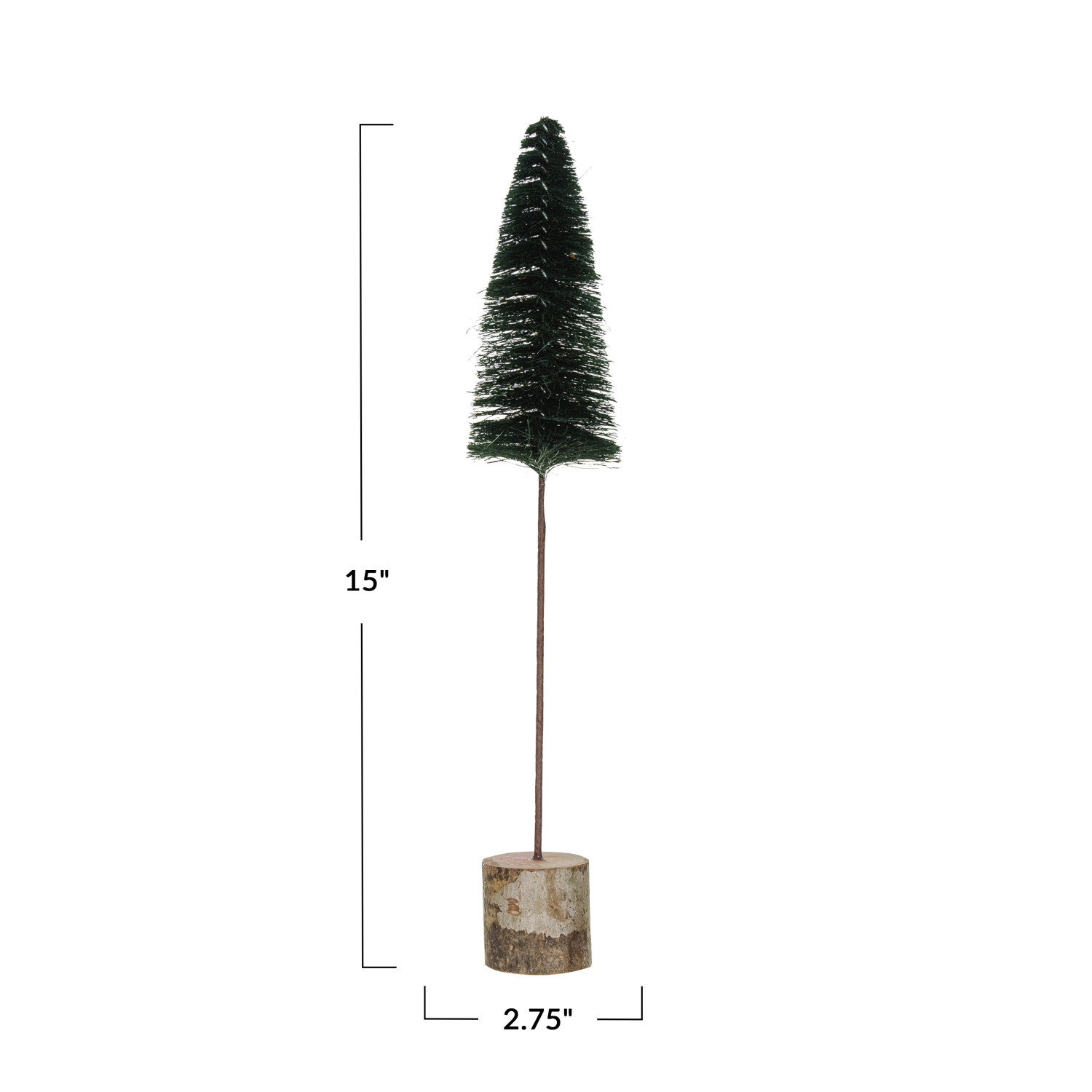 Catalog Name: 2-3/4" Round x 15"H Sisal Bottle Brush Tree w/ Wood Slice Base & Glitter Stars, Green