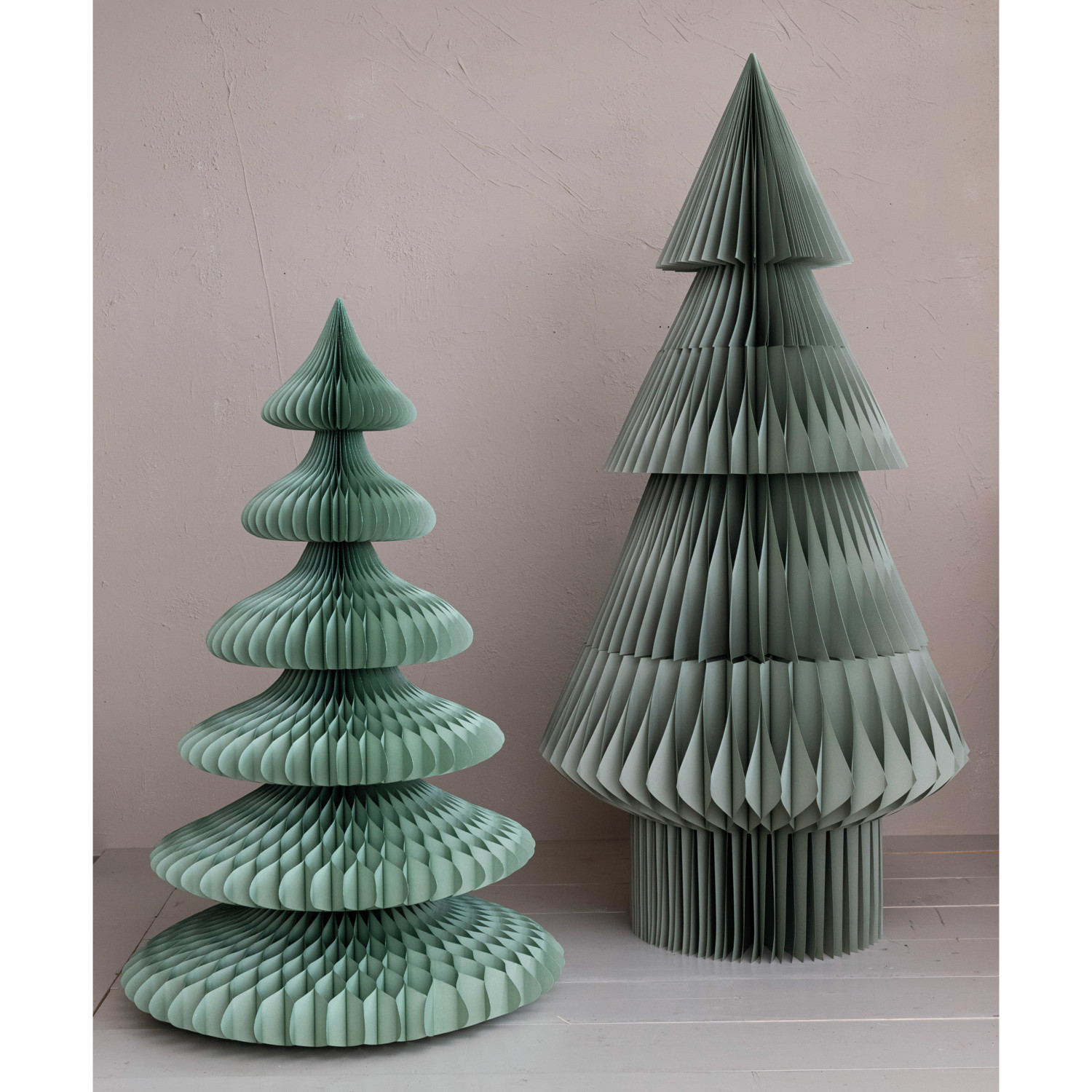 This mint paper honeycomb tree is a cute and cheerful way to decorate for the holidays. It features a simple design that pops up into a round shape with a pointed top, creating a three-dimensional effect. The tree has a bright and refreshing mint color that adds a touch of whimsy and joy to any festive theme. The tree is ideal for placing on a table, mantel, shelf, or window sill, where it can create a cozy and inviting atmosphere. The tree is also easy to fold and store, making it a convenient and reusable option. The tree is made of high-quality paper that is durable. It measures 40 inches in diameter and 60 inches in height, making it a charming and noticeable centerpiece. This paper honeycomb tree is a great choice for anyone who loves colorful and playful holiday decor. Elevate the holiday decor with this eye-catching Christmas tree, adding both style and a touch of whimsy. A lovely paper honeycomb tree that pops up into a round shape with a pointed top. A fresh and festive addition to any holiday decor, this mint tree brings a splash of color and fun to any room. Ideal for displaying on a table, mantel, shelf, or window sill, this tree can be easily folded and stored for next year.