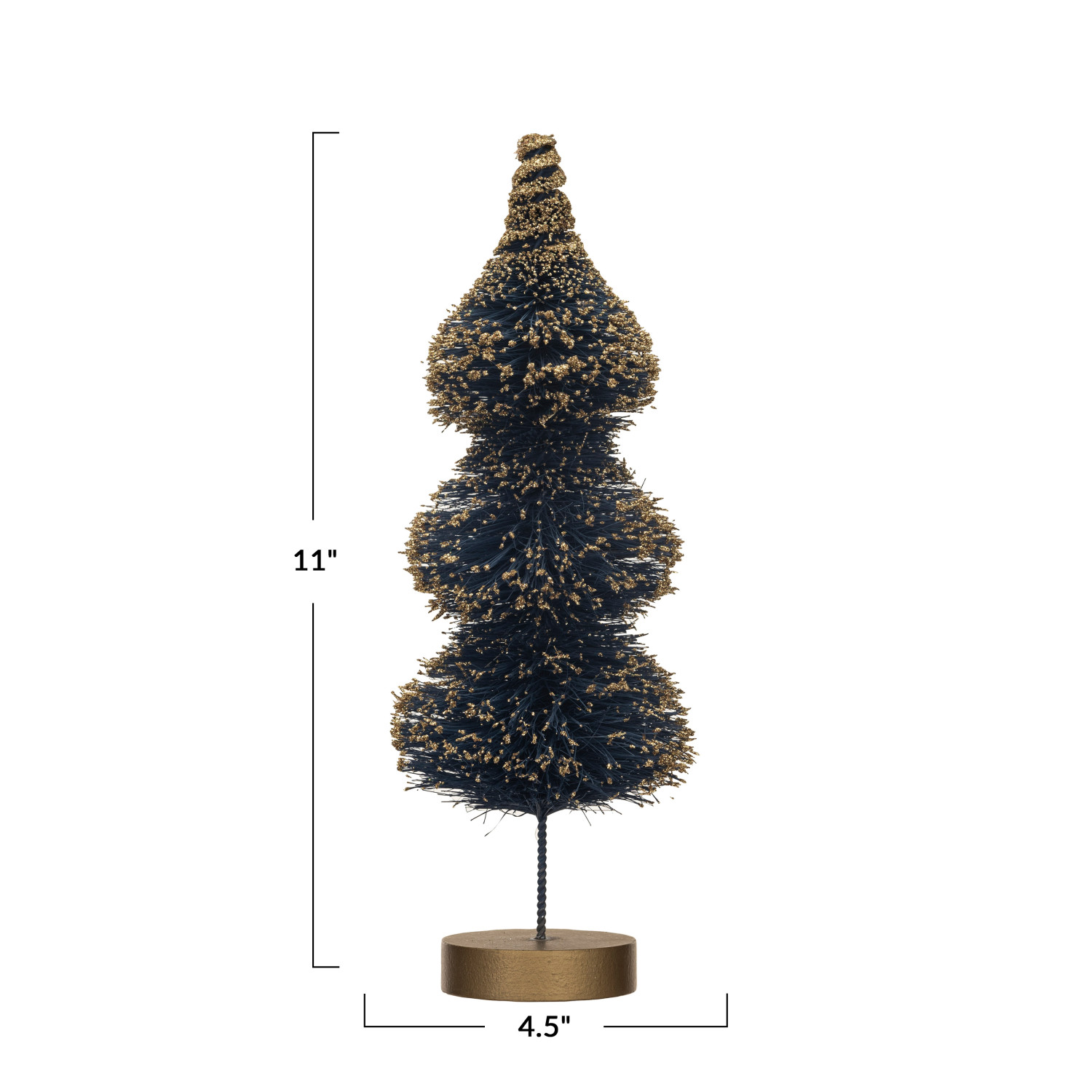 Catalog Name: 4-1/2" Round x 11"H Sisal Bottle Brush Tree w/ Gold Glitter & Wood Base, Blue