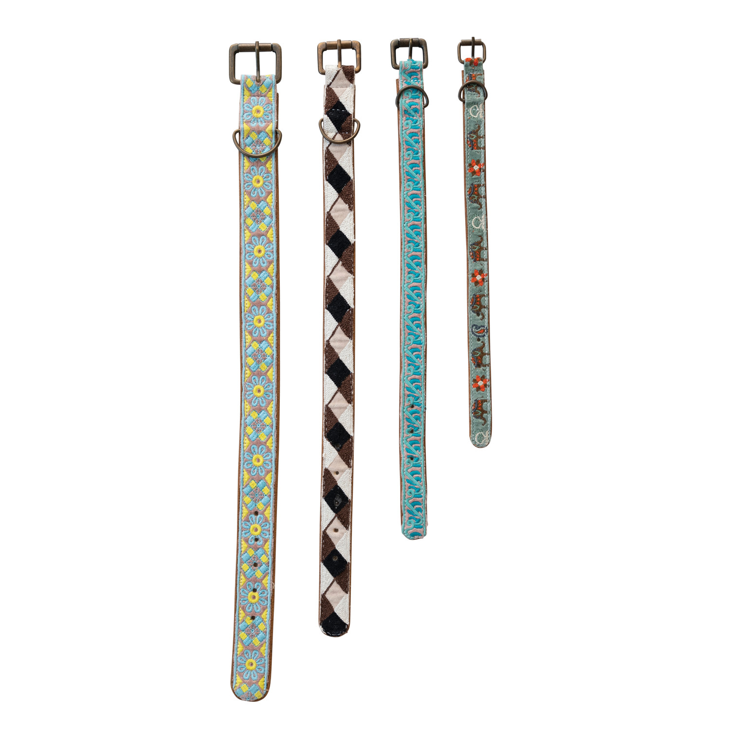 Catalog Name: 25"L x 2"W Cotton & Leather Dog Collar w/ Embroidery & Metal Buckle, Multi Color, 6 Styles, Large