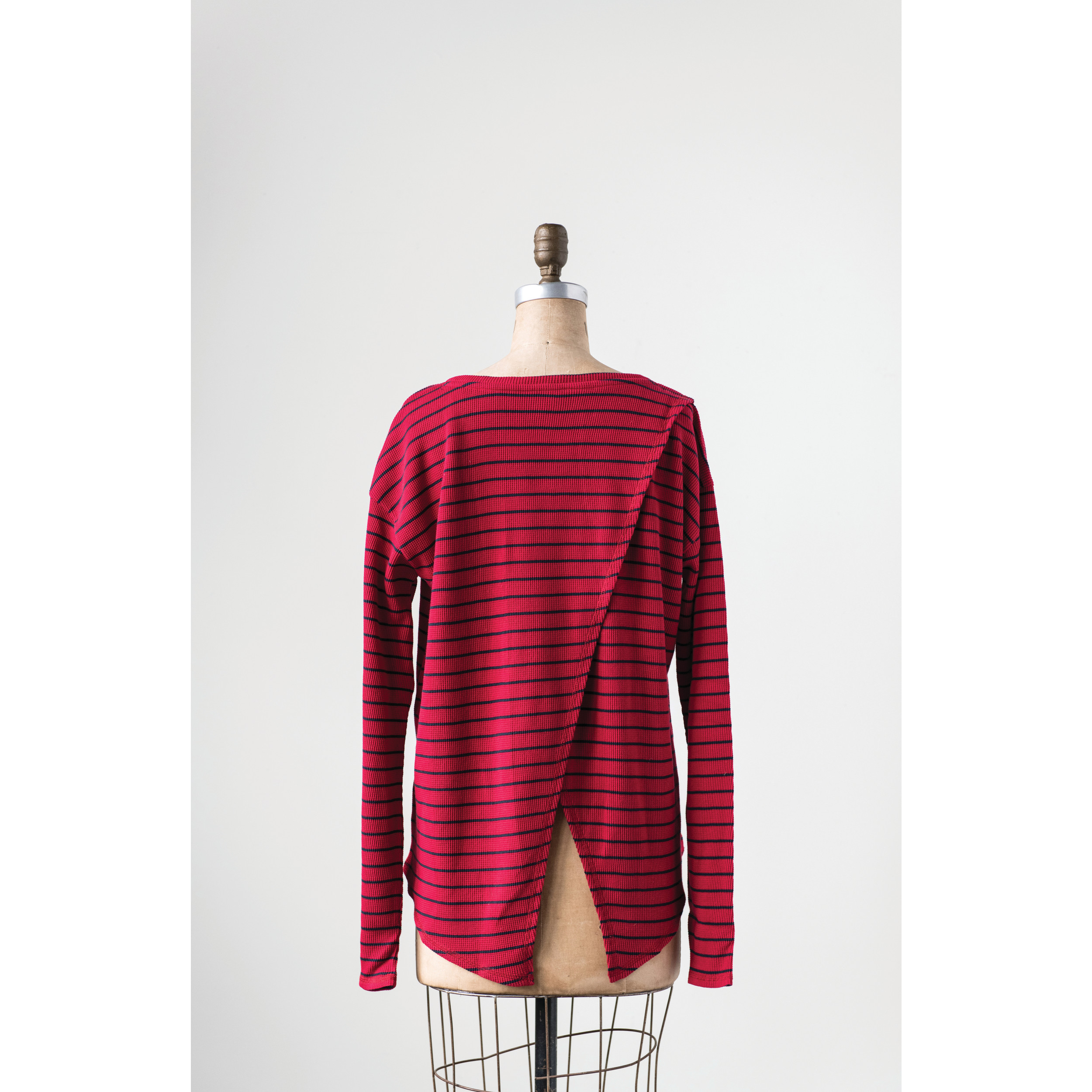 Catalog Name: Cotton Waffle Riley Tee w/ Cross Back, Red w/ Navy Color Stripe, Small
