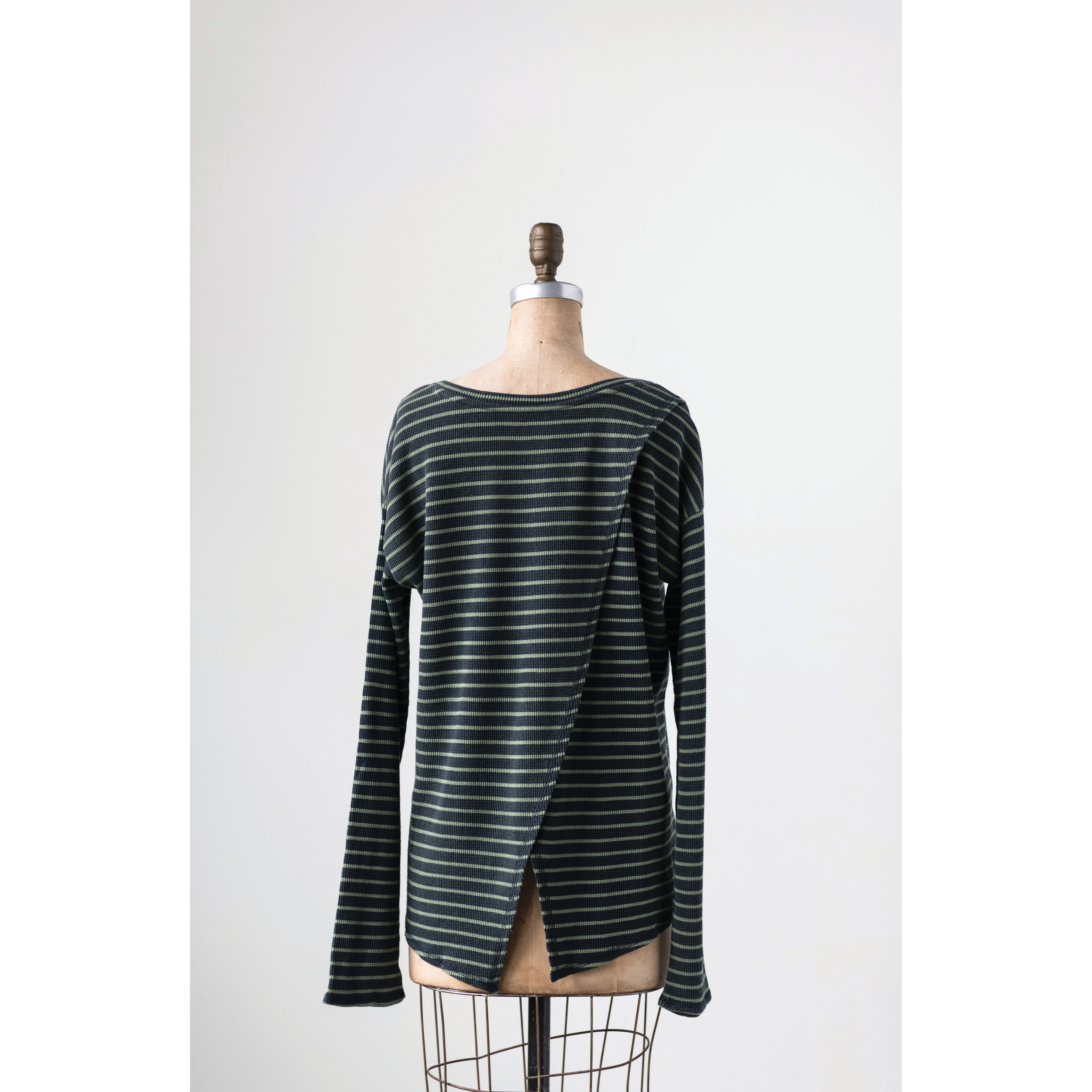 Catalog Name: Cotton Waffle Riley Tee w/ Cross Back, Charcoal w/ Olive Green Stripe, Large