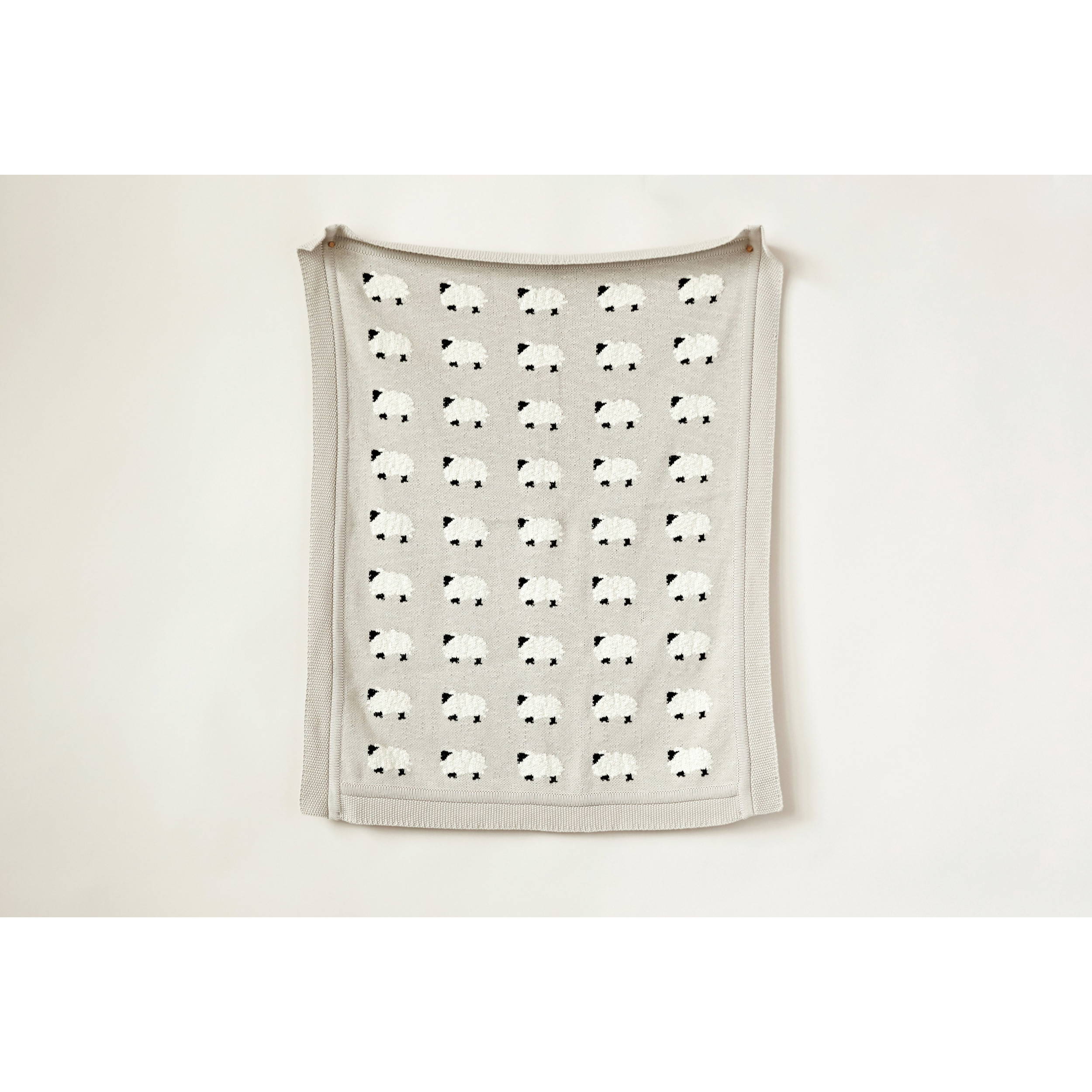 Catalog Name: 40"L x 32"W Cotton Knit Baby Blanket w/ Sheep, Grey, White & Black