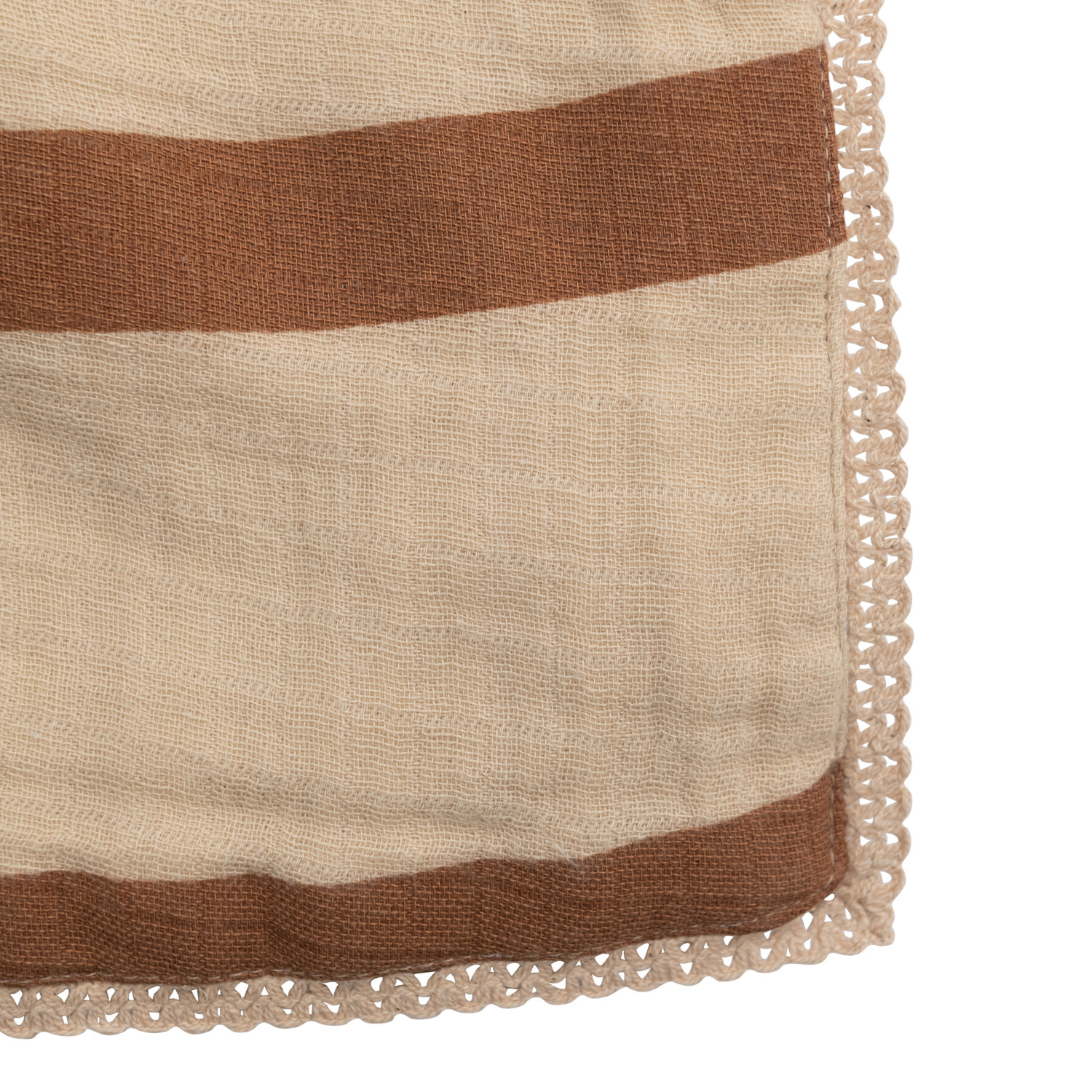 Catalog Name: 40"L x 32"W Cotton Double Cloth Printed Baby Blanket w/ Stripes in Bag, Brown & Natural