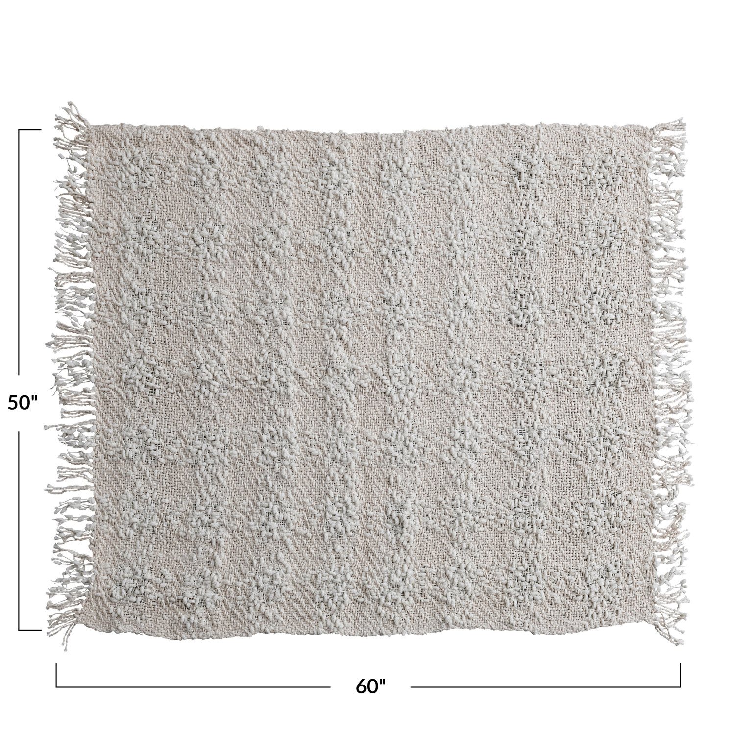 Catalog Name: 60"L x 50"W Woven Cotton Blend Cable Knit Throw w/ Fringe, Natural