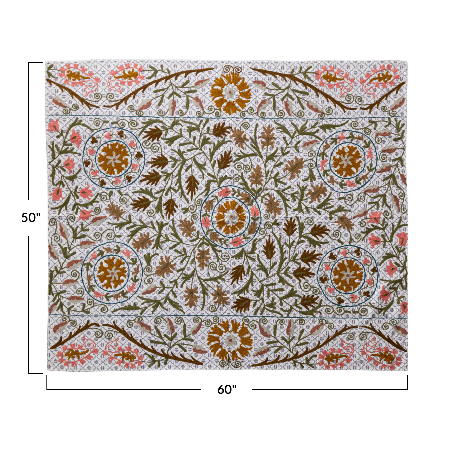 Catalog Name: 60"L x 50"W Stonewashed Cotton Voile Printed Throw w/ Suzani Pattern, Hand-Embroidered Kantha Stitch & Chambray Back, Multi Color