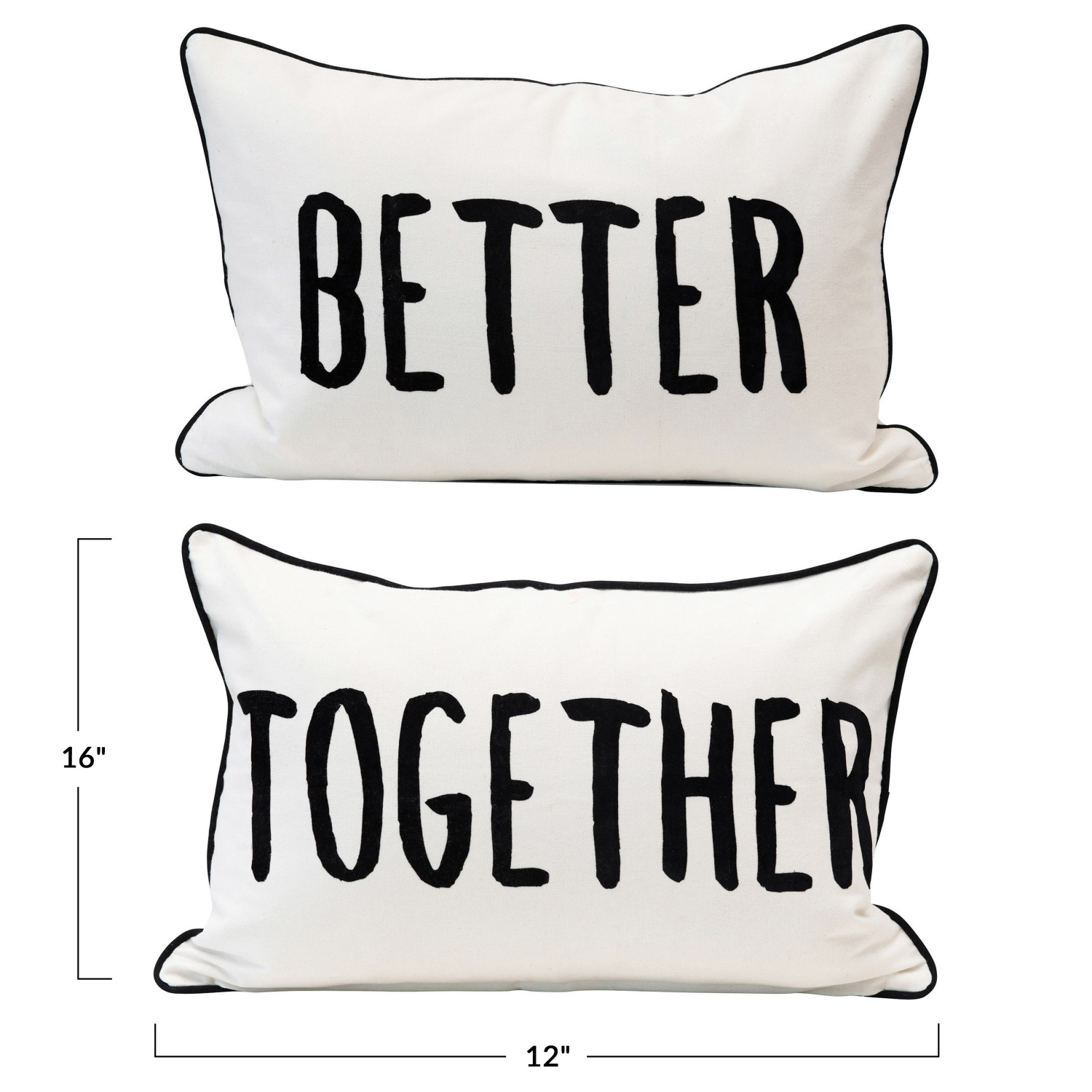 Catalog Name: 24"L x 16"H Two-Sided Cotton Lumbar Pillow w/ Piping & Applique "Better/Together", Cream Color & Black