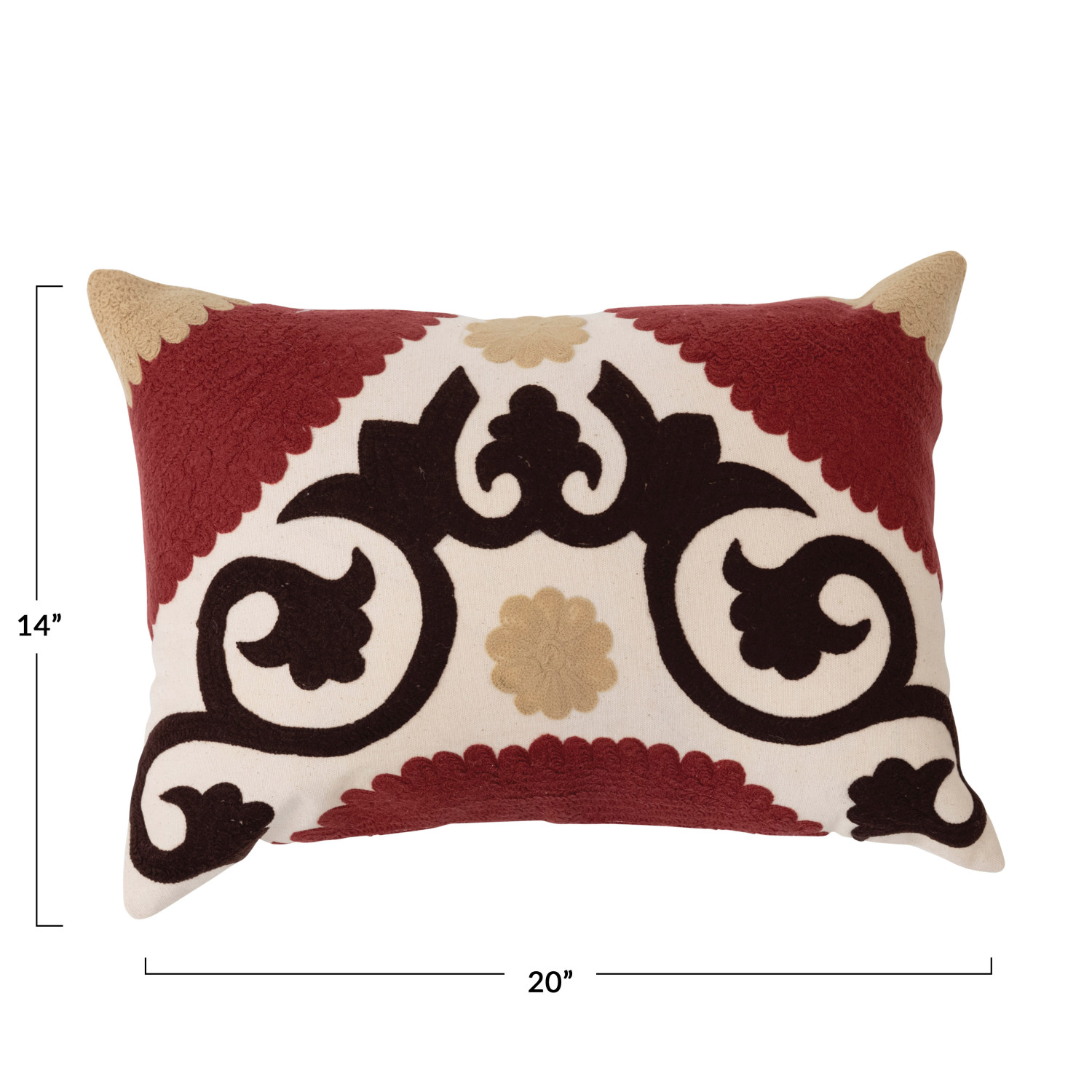 This global-inspired lumbar pillow features intricate suzani embroidery on durable woven cotton. Multicolor cotton lumbar pillow with suzani embroidery; Natural cotton encasement on back. Express your constantly evolving style with the simple addition of this eye-catching pillow. Removable lumbar pillow cover and insert; Back zipper with hidden flap; Machine wash cold, gentle cycle, do not bleach, warm iron if needed.