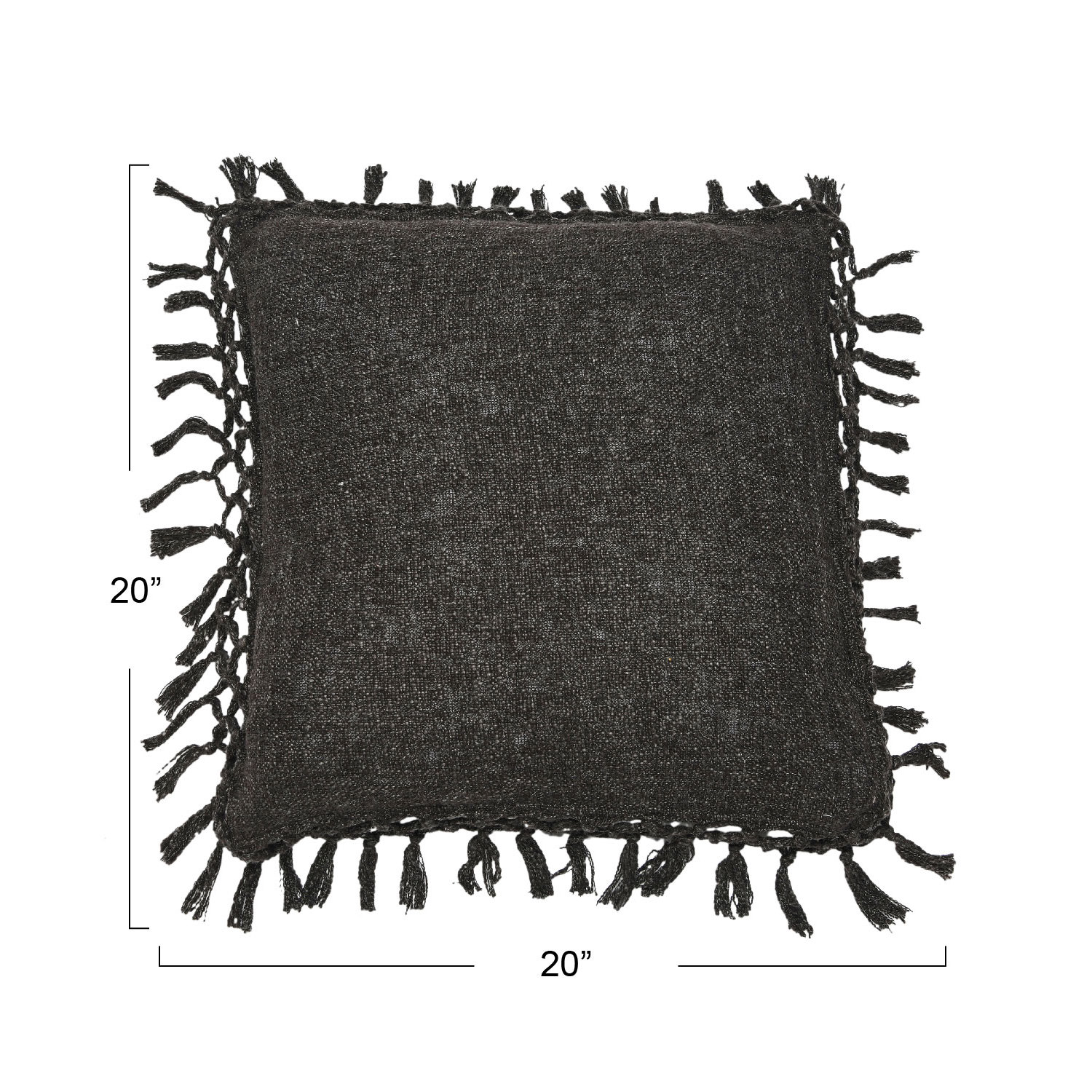 Catalog Name: 20" Square Cotton Slub Pillow w/ Crochet & Fringe, Black