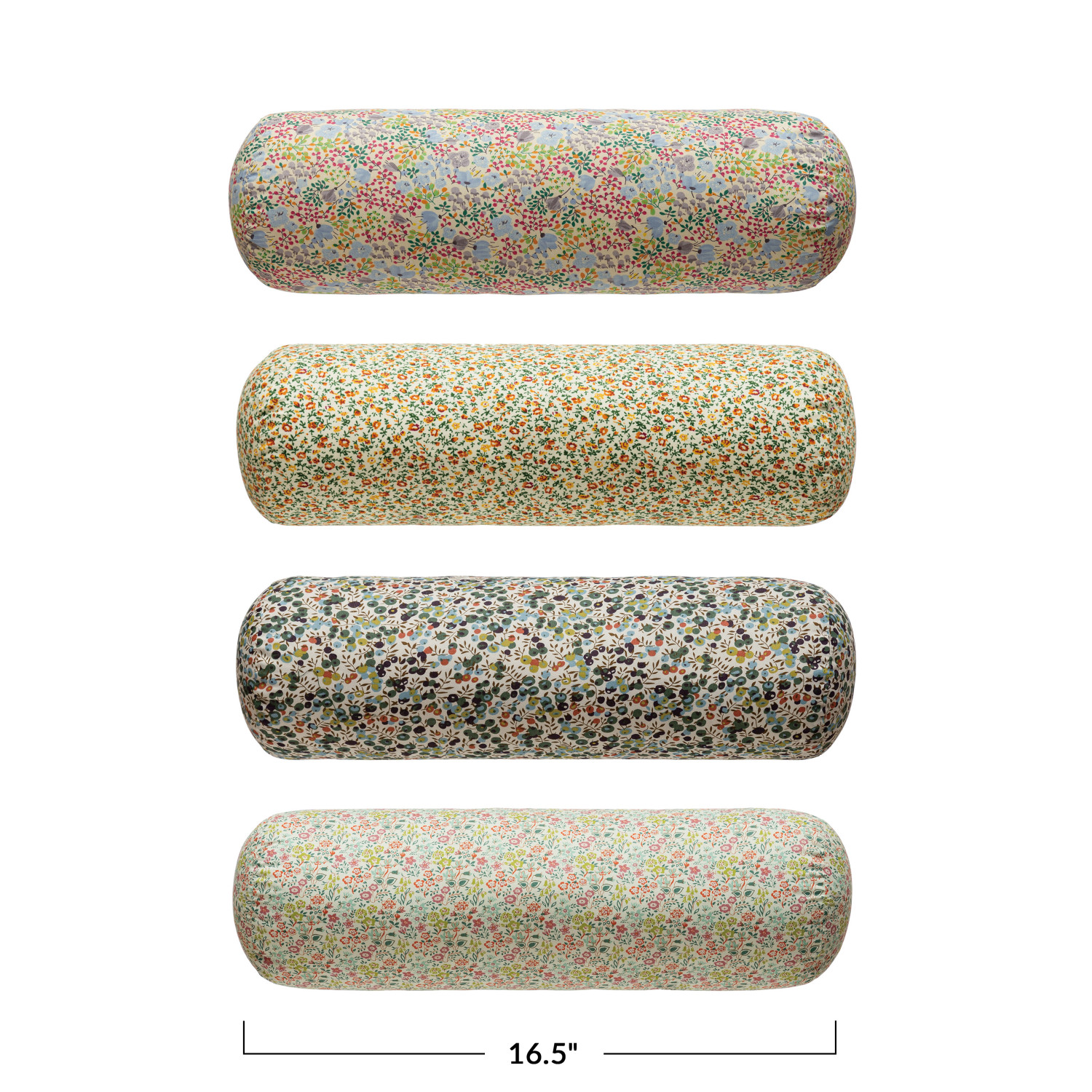 Catalog Name: 16-1/2"L x 6"H Cotton Printed Bolster Pillow w/ Ditsy Floral Pattern, Multi Color, 4 Styles