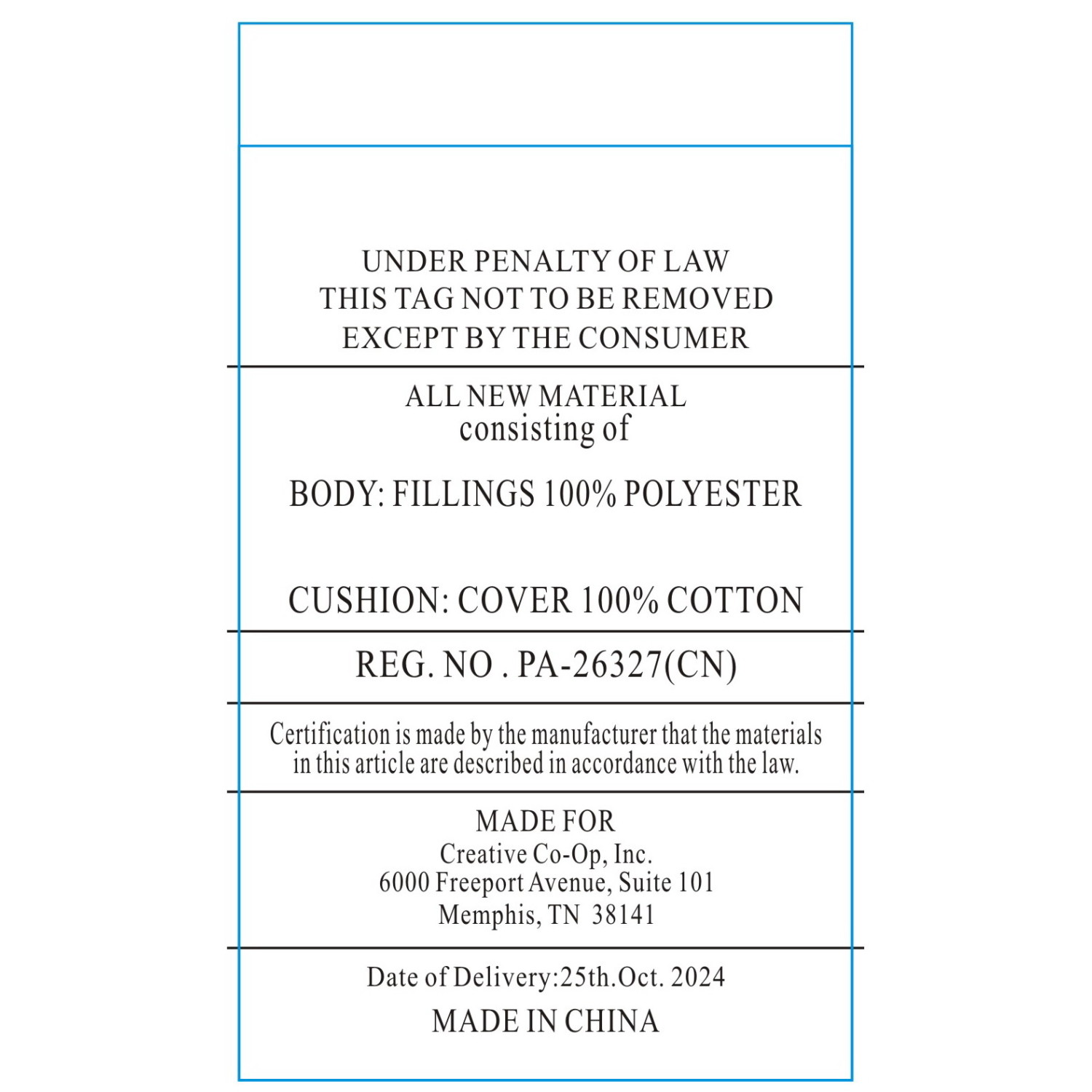 Materials: Cover:100% Cotton, Filling: 100% Polyester, Zipper : 95% Polyester, 5% Iron
