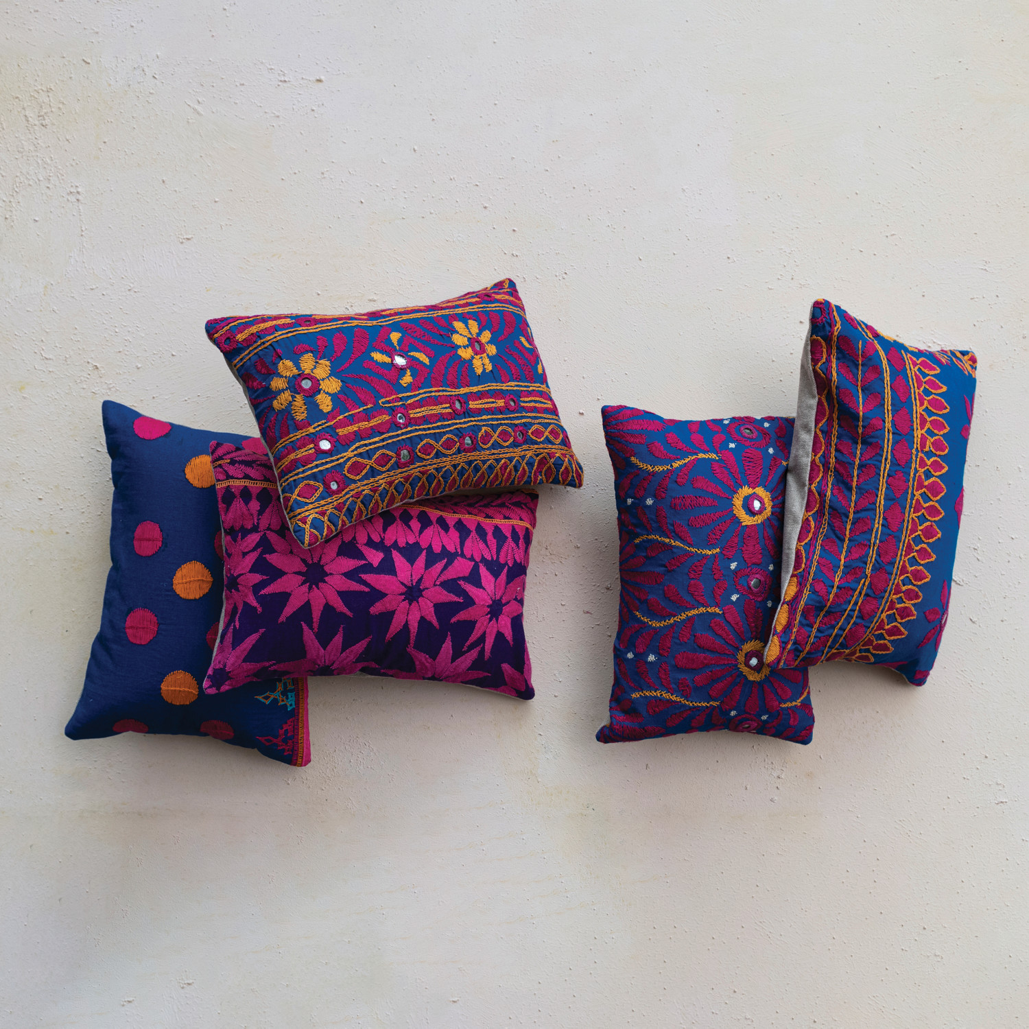 Our thoughtfully curated collection of throw pillows showcases a wide array of lush woven textures, prints, embroidery, and silhouettes to create the picture-perfect nook. Explore a variety of plush accents to transform a house into a home including throw pillows, lumbar pillows, bolster pillows, down and polyfill inserts, and so much more. Choose from a vast array of materials from supple velvet and handwoven cotton to embroidered wool and textural boucle, and styles from mid-century modern and classic farmhouse to contemporary boho and vintage glam. Add a dash of relaxation and sophistication to a lounge space or bedroom to curate a warm and welcoming ambiance that is guaranteed to impress. This one-of-a-kind throw pillow features a bold, naturally variating ikat design topped with intricate embroidery. Display in a bedroom or living space of any style from eclectic to boho. Machine Wash Warm or Hand Wash. Made from 100% cotton.