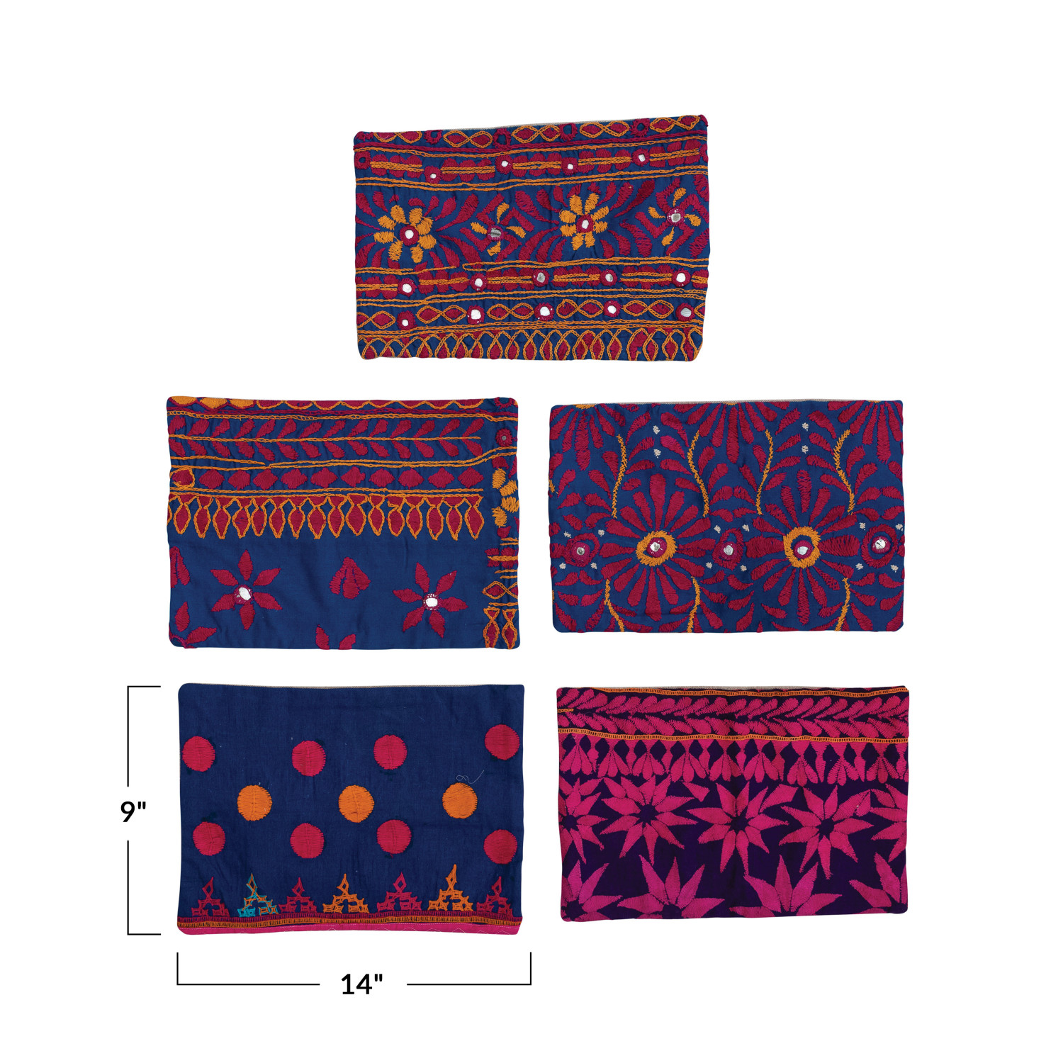 Catalog Name: 14"L x 9"H Found Cotton Lumbar Pillow w/ Embroidered Design & Chambray Back, Multi Color (Each One Will Vary)