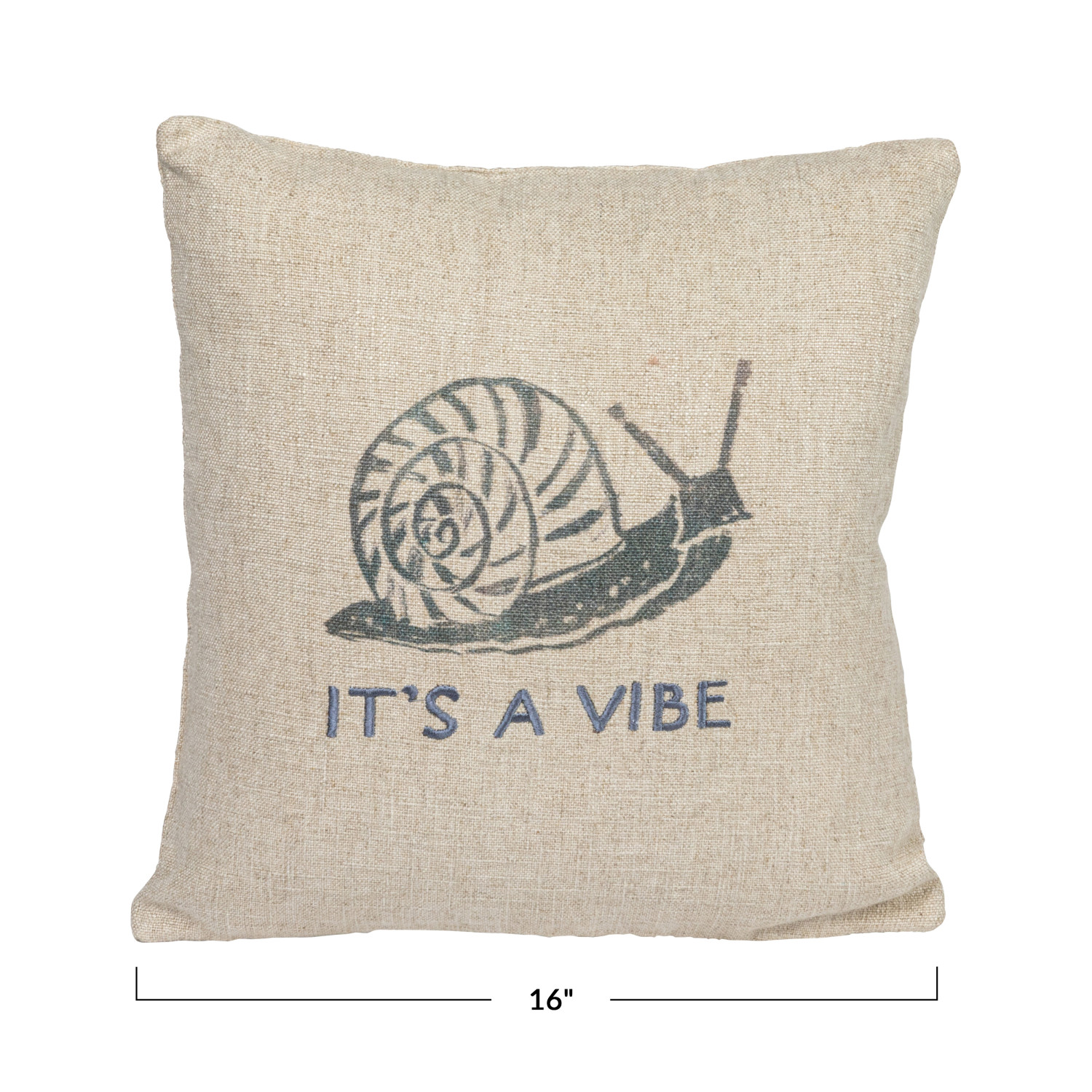 Catalog Name: 16" Square Linen Blend Printed Pillow w/ Snail & Embroidery "It's A Vibe", Grey ©