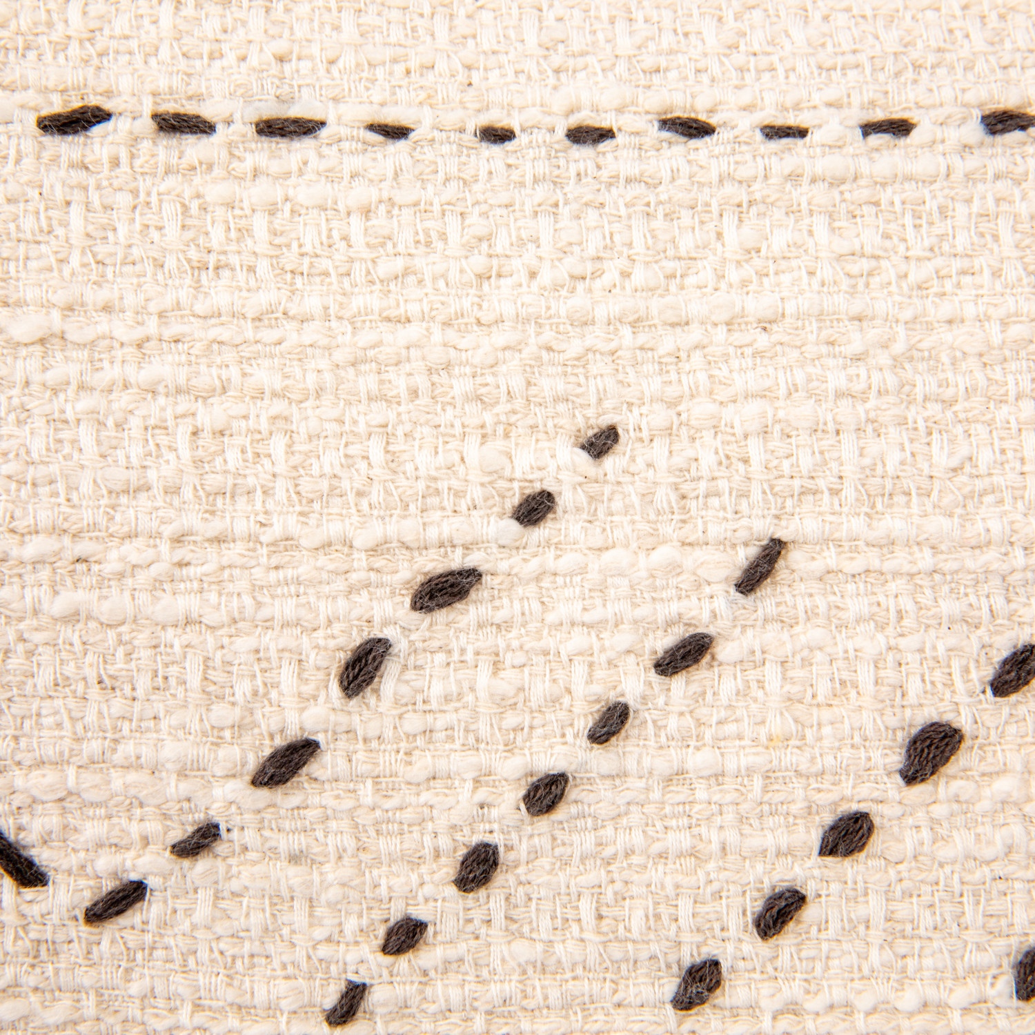 Catalog Name: 24"L x 16"H Cotton Lumbar Pillow w/ Hand-Embroidered Kantha Stitch, Natural & Black