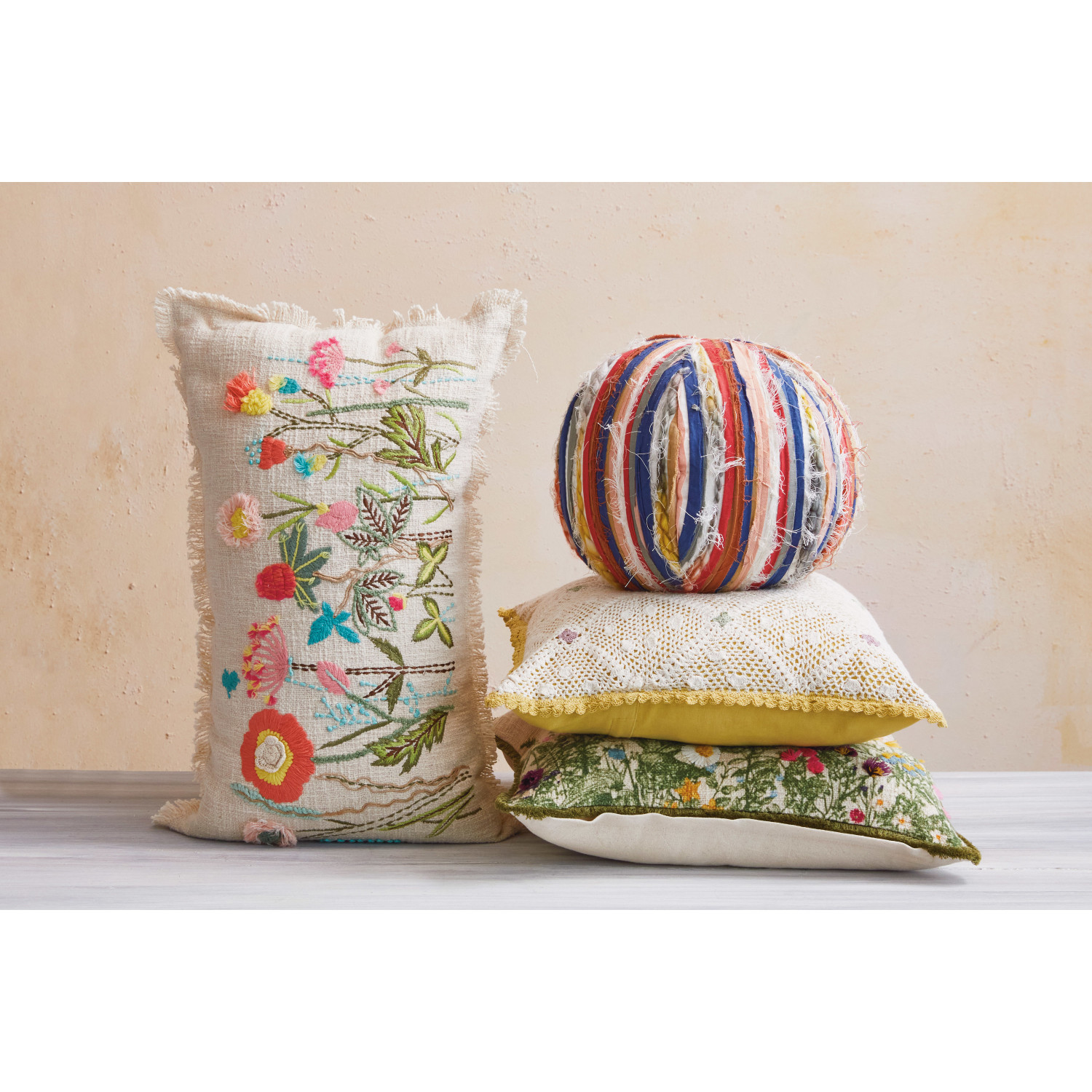 Catalog Name: 10" Round Woven Cotton Blend Orb Pillow w/ Ripped Fabric Stripes, Multi Color