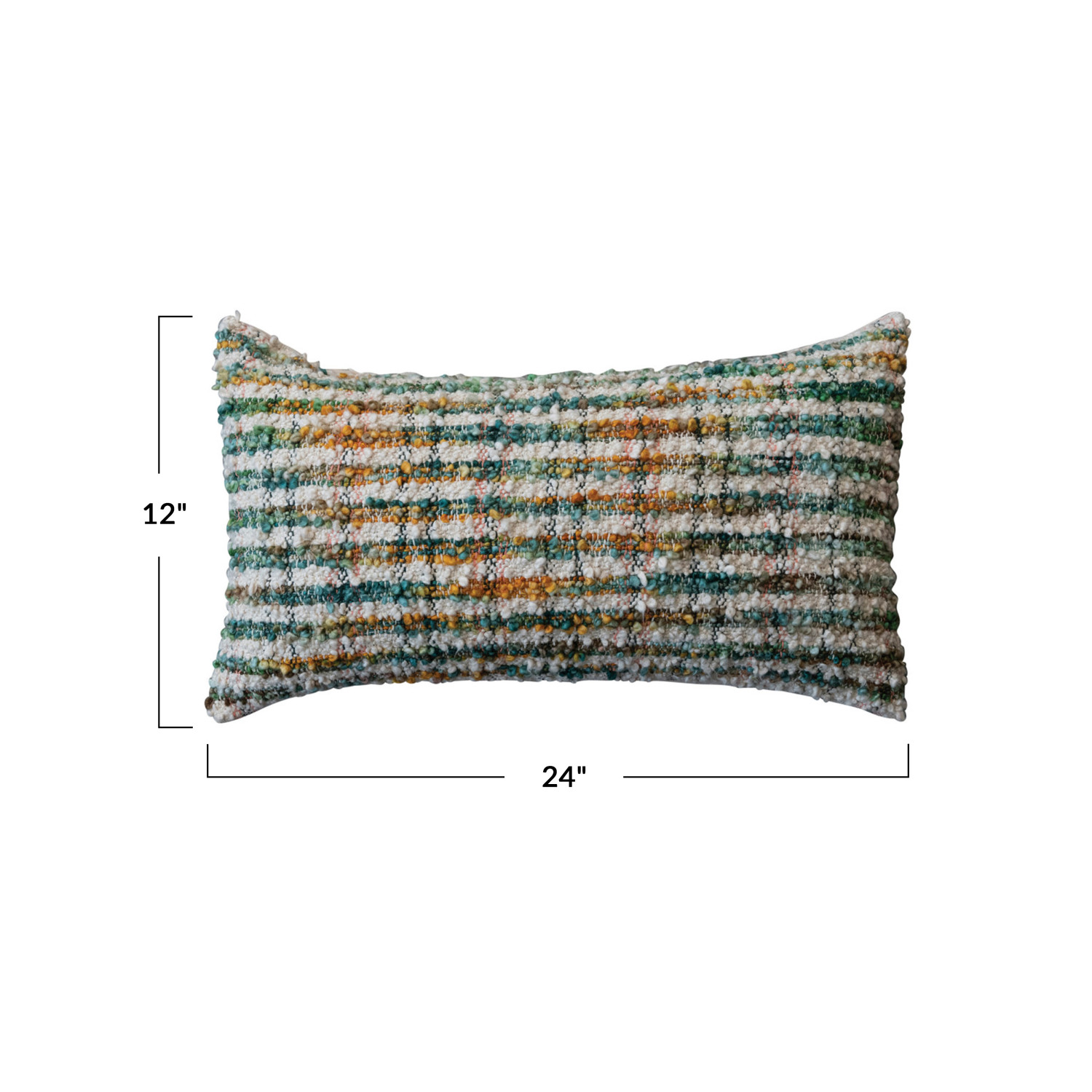 Catalog Name: 24"L x 12"H Woven Cotton Blend Bouclé Lumbar Pillow w/ Stripes, Multi Color