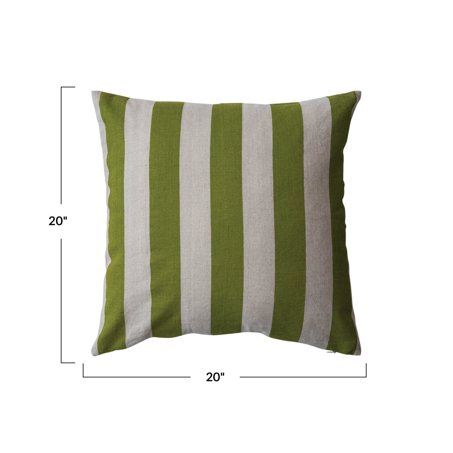 Catalog Name: 20" Square Cotton & Linen Printed Striped Pillow, Green & Natural