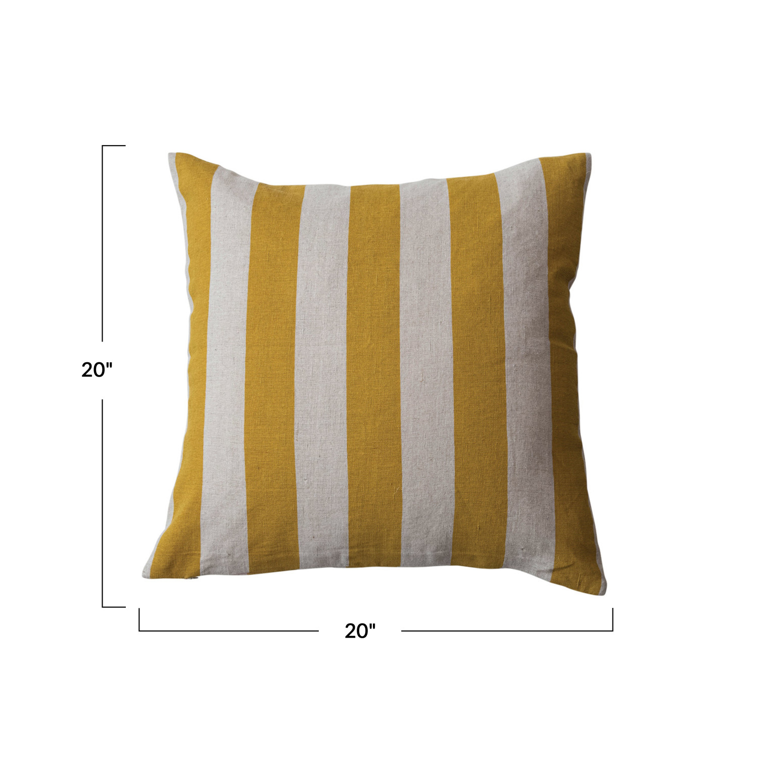 This yellow and natural cotton and linen striped pillow is a classic and cozy addition to any space. It features a simple and elegant striped pattern with horizontal stripes of different widths, creating contrast and interest. The pillow is made of a rich, smooth cotton and linen blend fabric, providing a soft and breathable feel. The polyester fill adds extra support and durability. The pillow measures 20 by 20 inches and is easy to care for and machine washable. It complements farmhouse, transitional, cottagecore, French country, or beach style decor. This versatile and timeless accessory is perfect for creating a cozy atmosphere or a bright and cheerful vibe. It is easy to care for and machine washable, making it a great choice for any space.