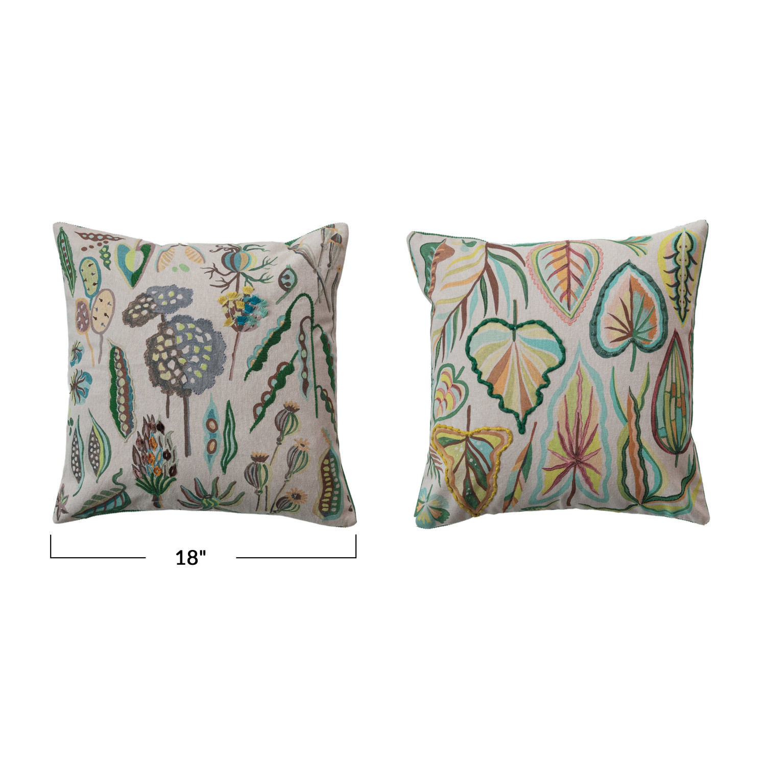 Catalog Name: 18" Square Cotton Chambray Printed Pillow w/ Botanicals, Embroidery & Corduroy Back, Multi Color, 2 Styles ©