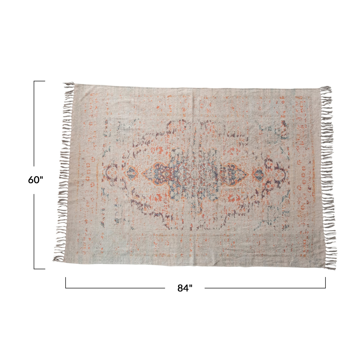 Catalog Name: 5' x 7' Cotton Chenille Distressed Print Rug w/ Fringe, Multi Color
