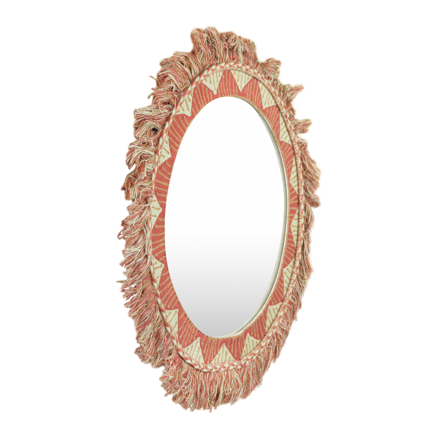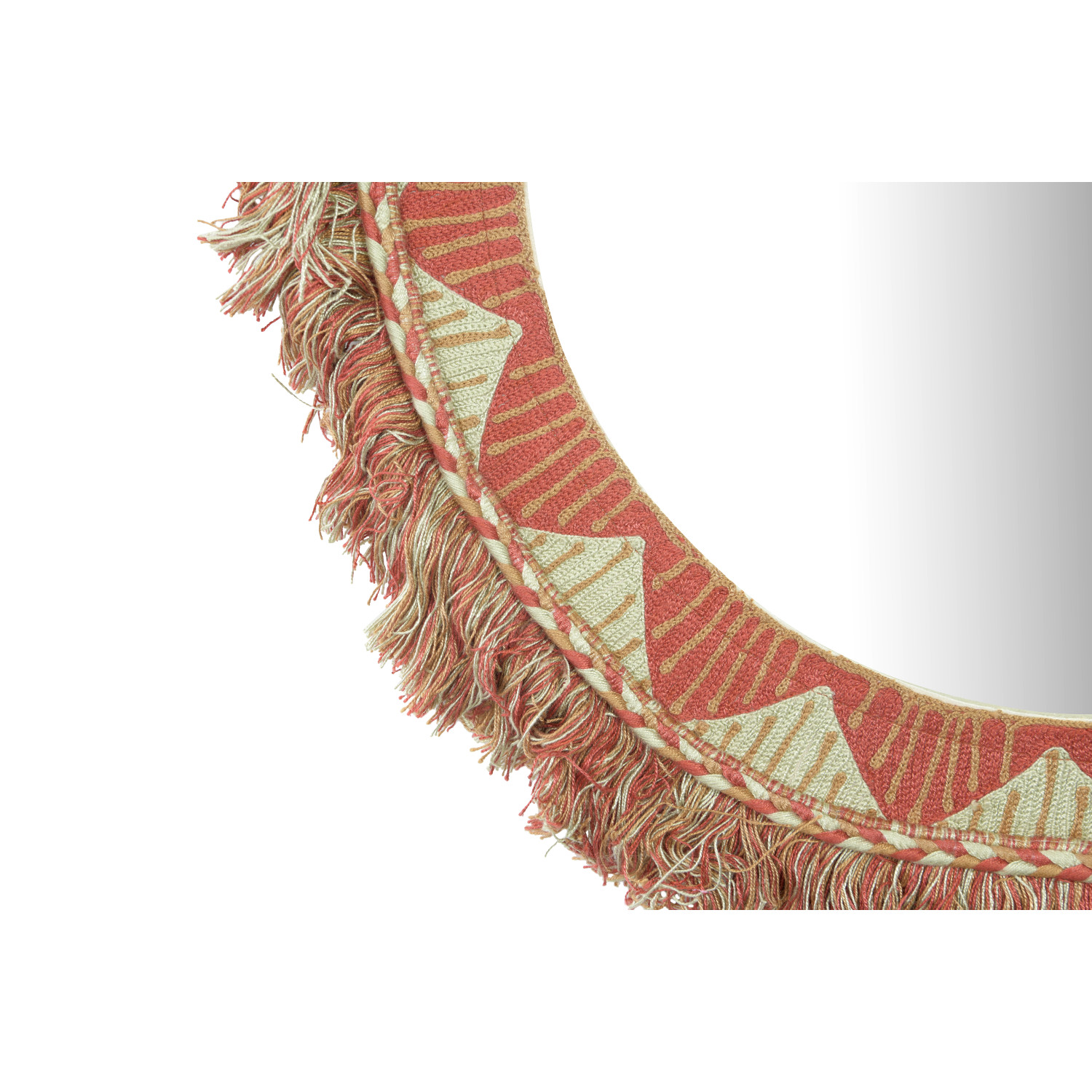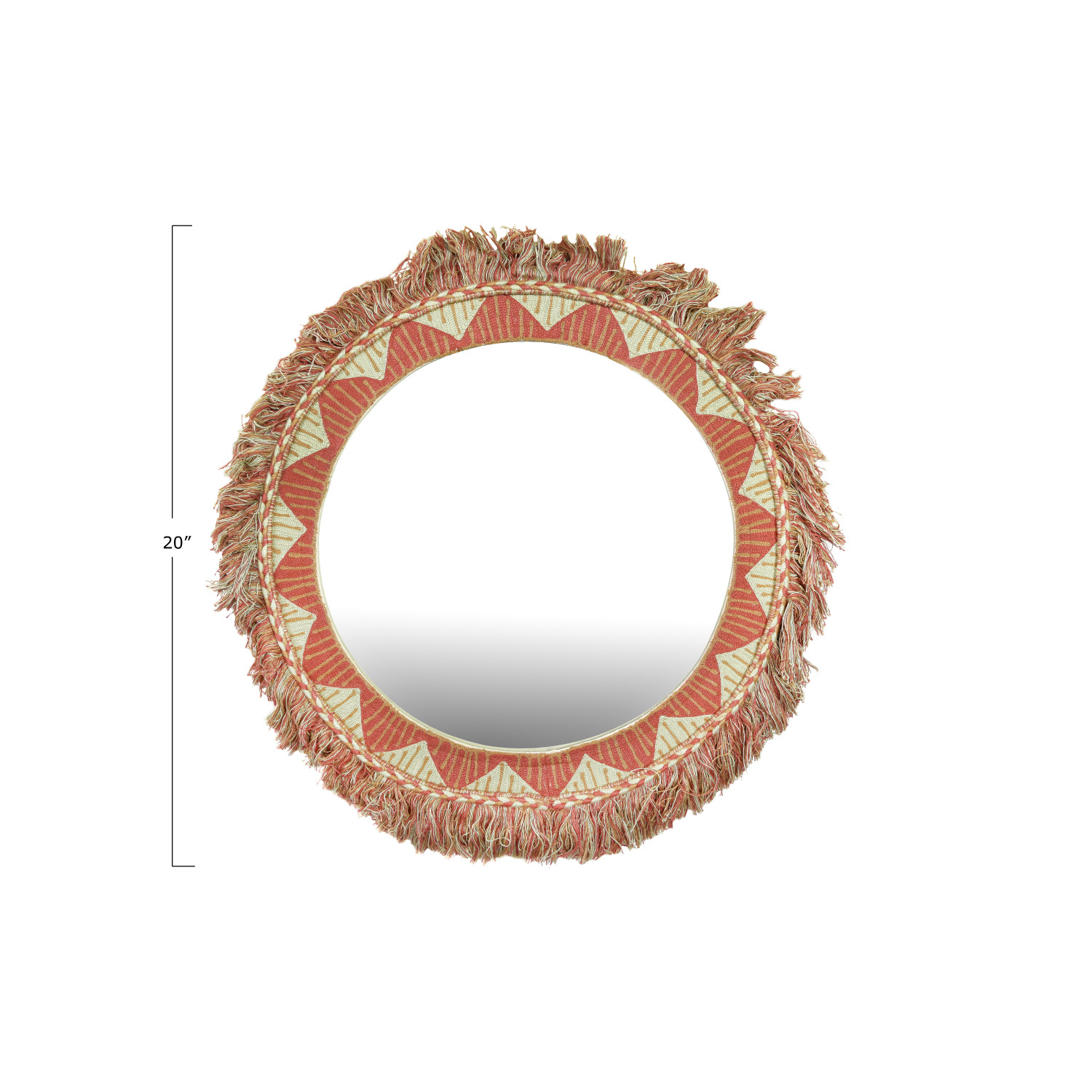 Catalog Name: 20" Round Embroidered Cotton Framed Mirror w/ Fringe Trim, Multi Color, Truck Ship