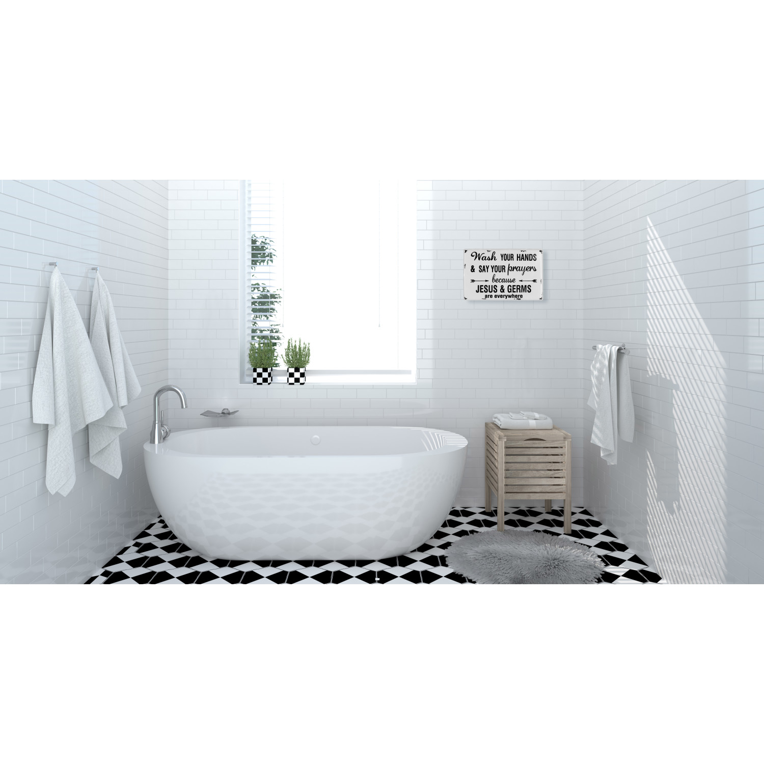 This "wash your hands and say your prayers" quote is something that is widely used in the South. Its simple black and white colors in combination with the metal material make it an easy addition to any room in your home or office.