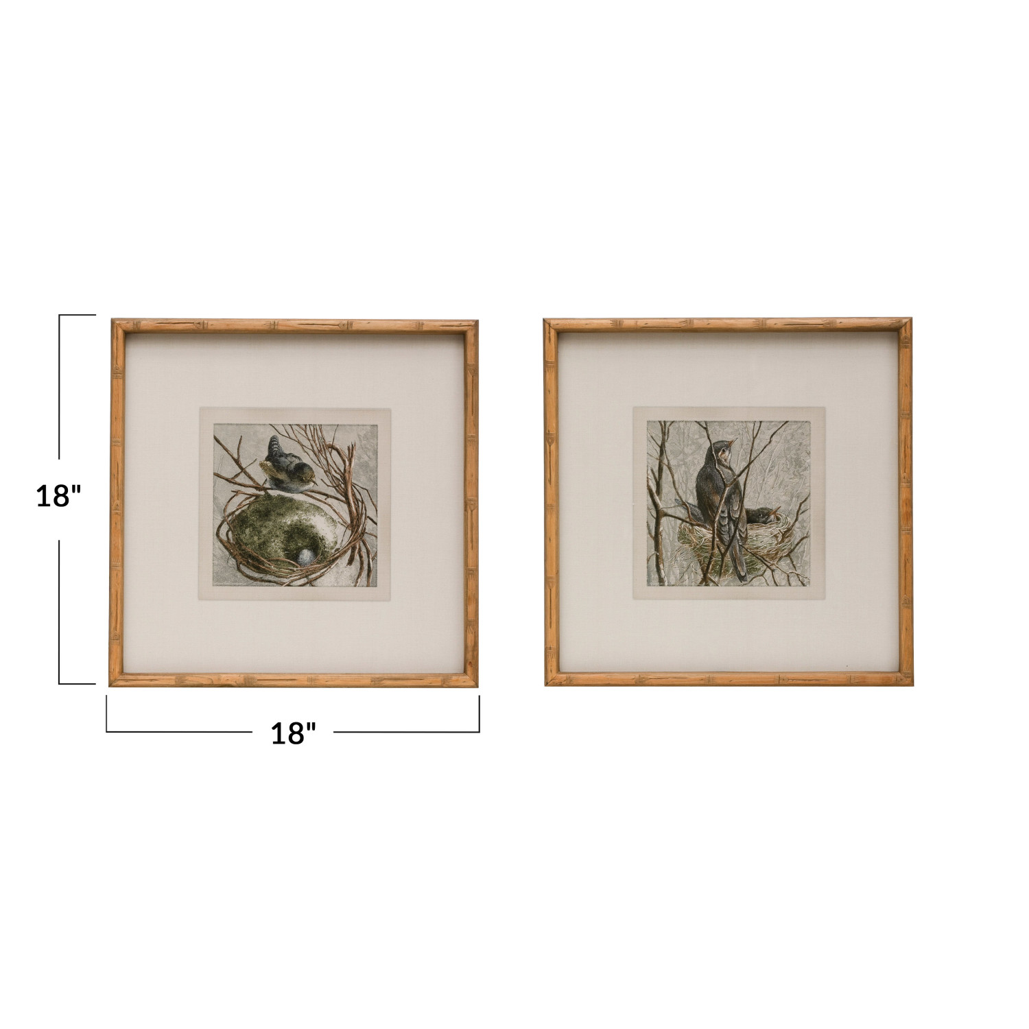 Catalog Name: 18" Square Wood Framed Glass Wall Décor w/ Bird & Nest, 2 Styles, Truck Ship ©