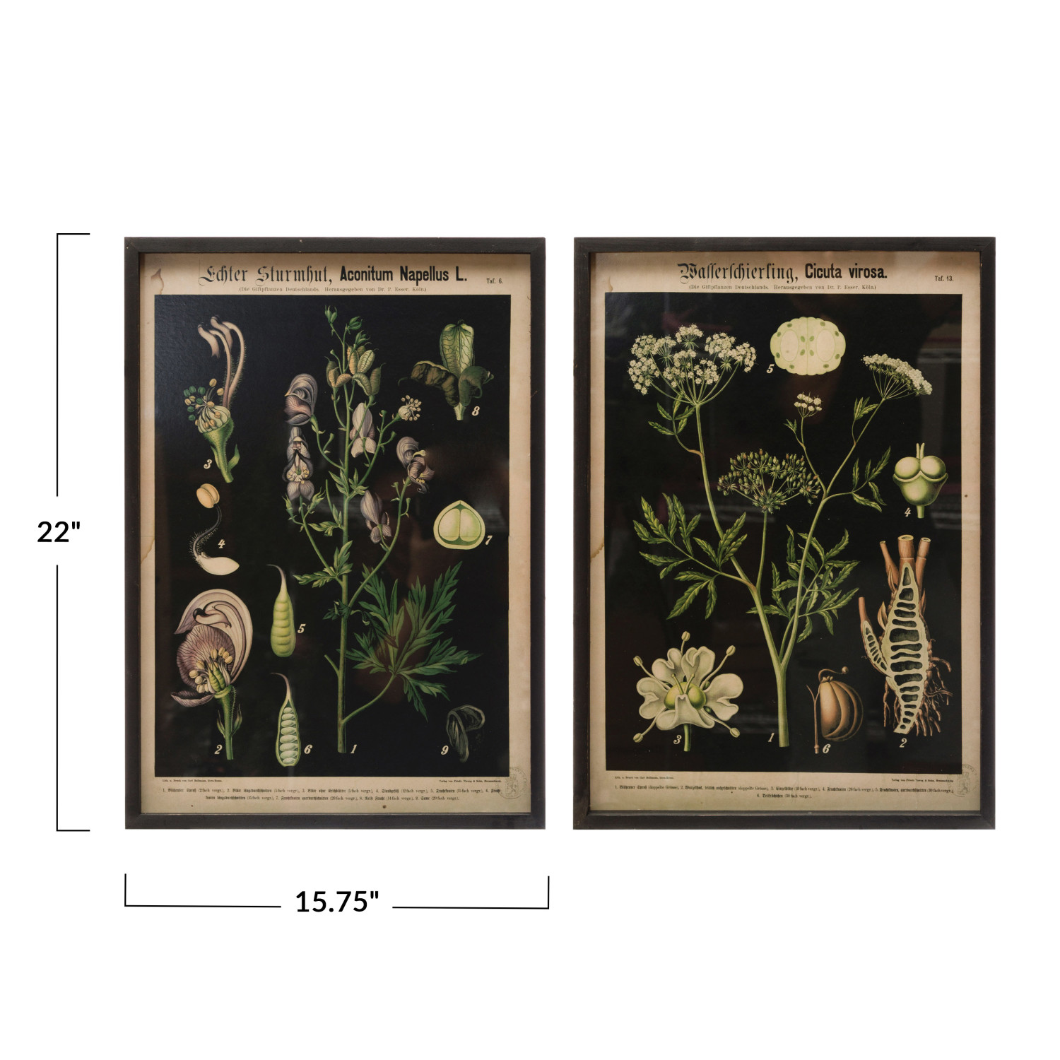 Catalog Name: 15-3/4"W x 22"H Wood Framed Glass Wall Décor w/ Botanical Print, 2 Styles