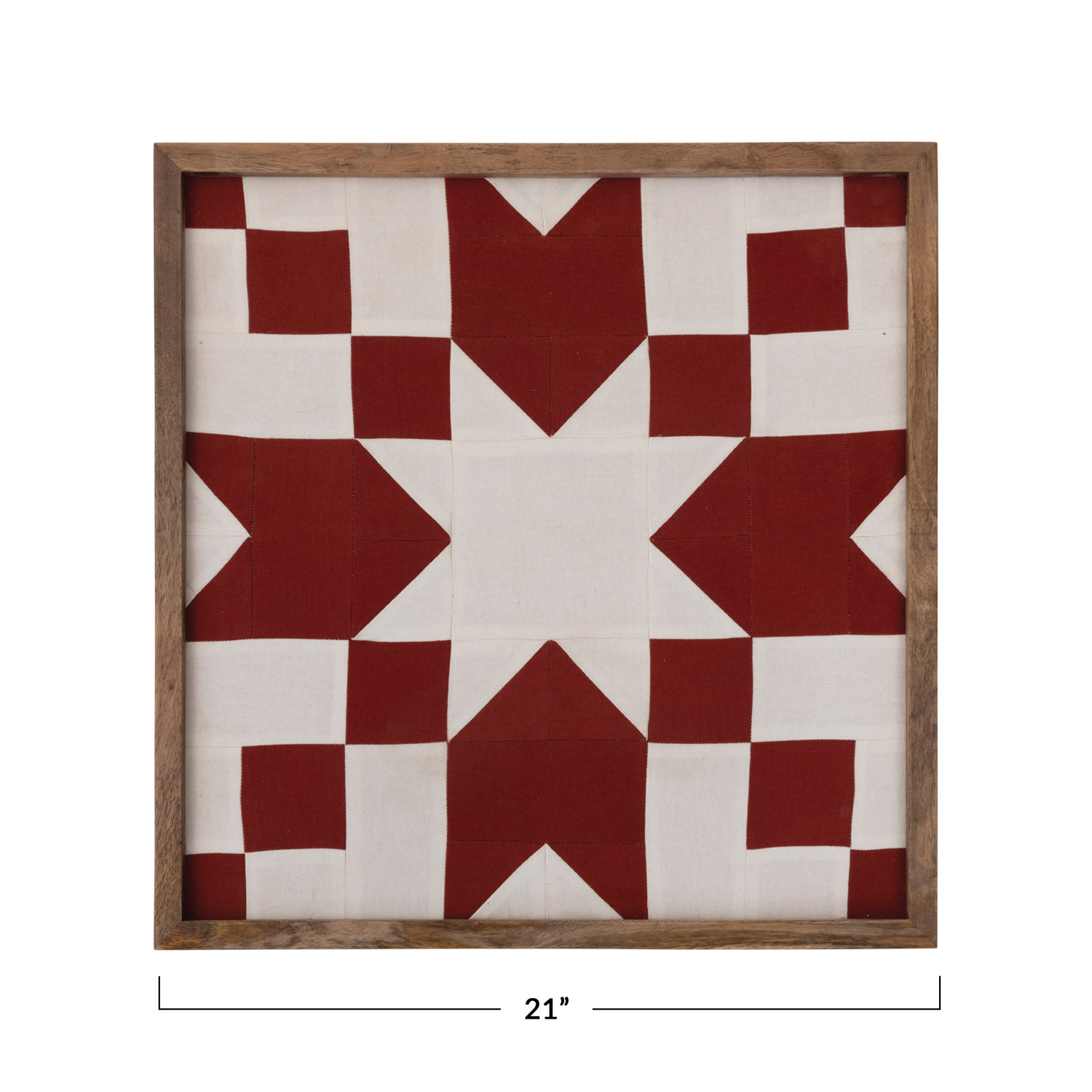 Catalog Name: 21" Square Mango Wood Framed Cotton Patchwork Fabric Wall Décor, Red & Cream Color