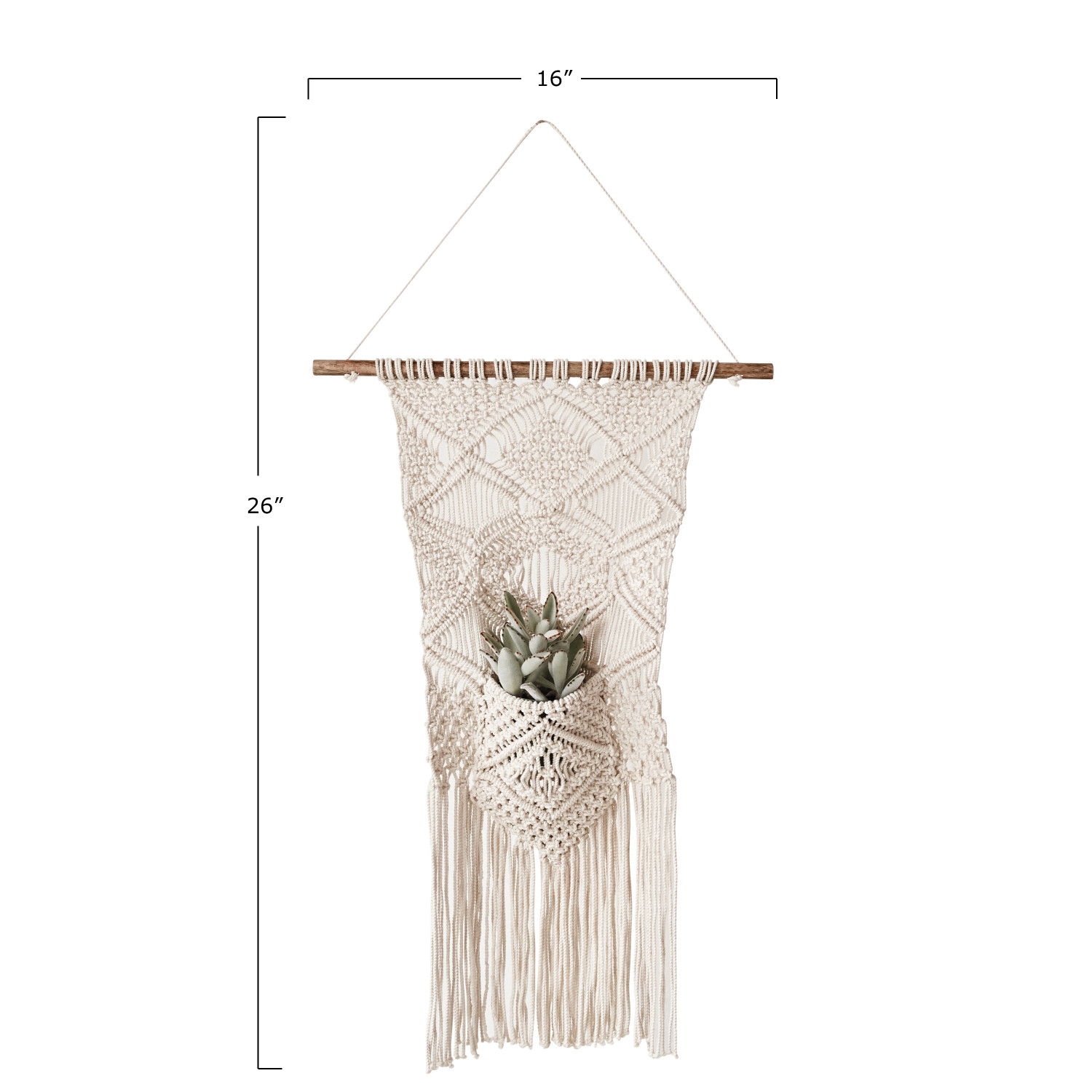Catalog Name: 16"W x 26"H Cotton Macramé Wall Hanging w/ Pocket & Fringe, Natural